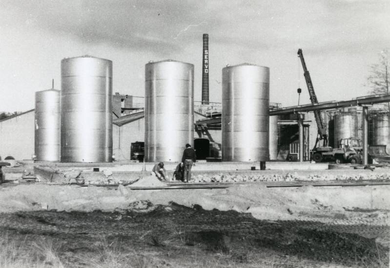 1976 Bouw kantine en service gebouw (nu gebouw 9) met muurschildering